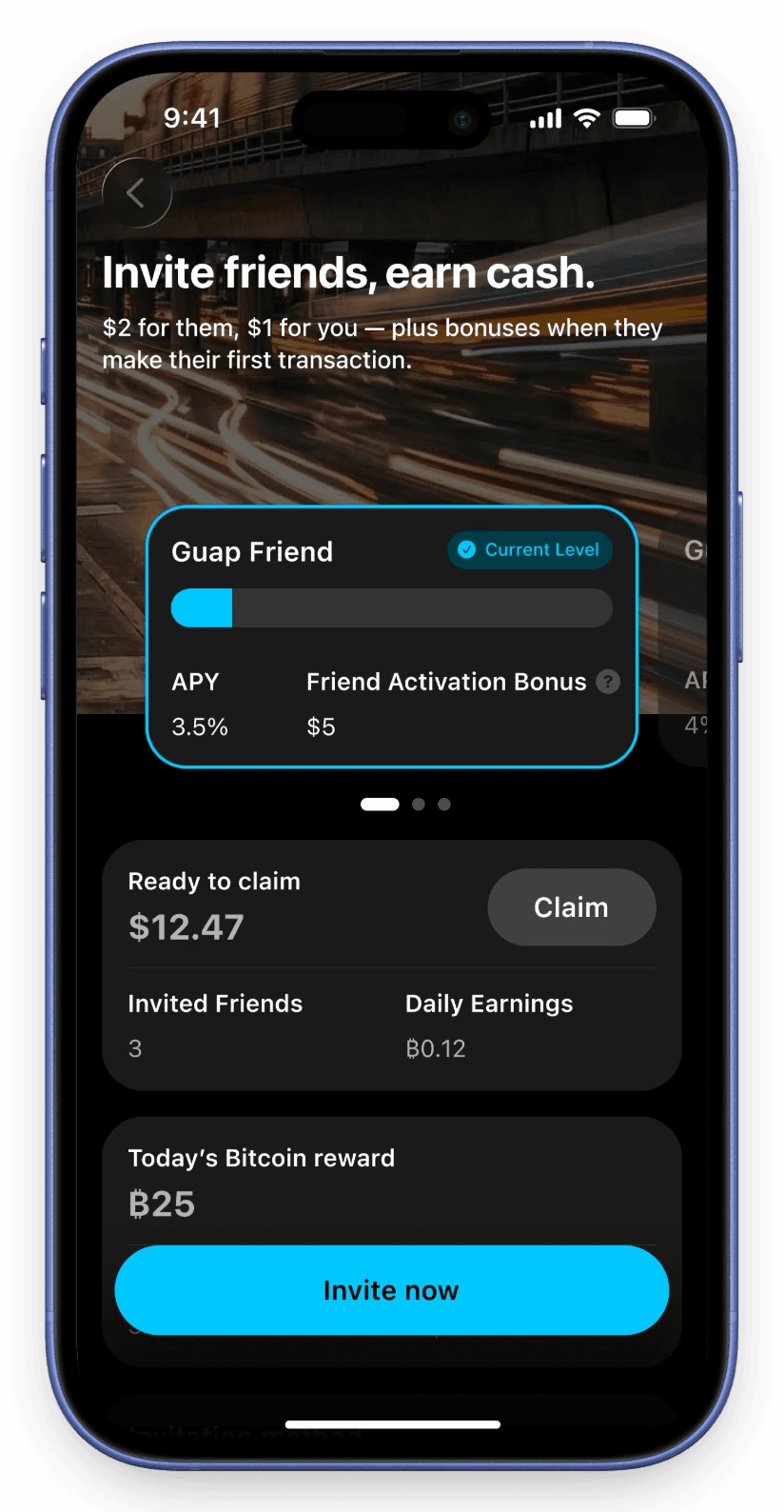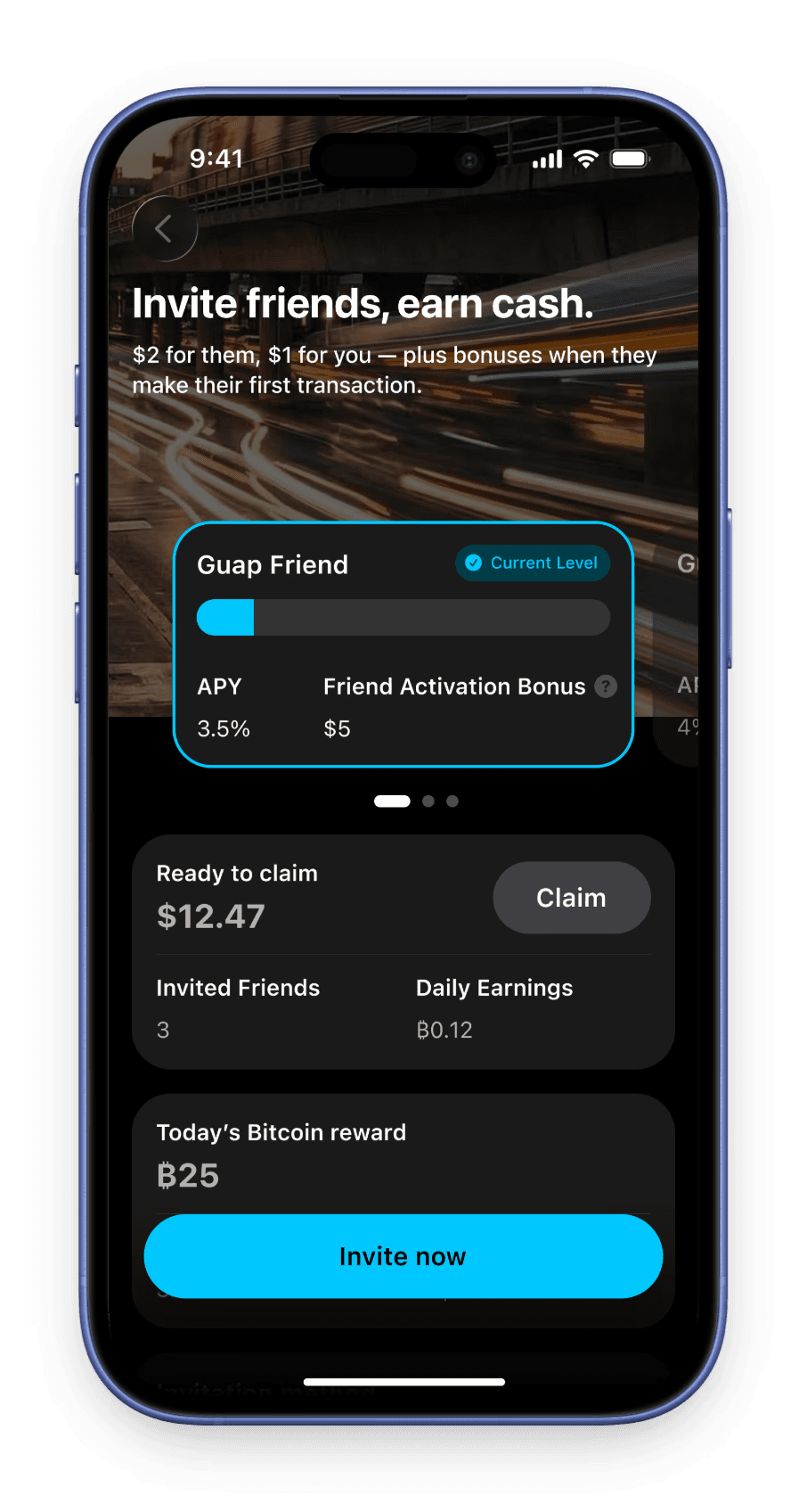 Hold dollar‑backed stablecoins in your Guap wallet and earn Bitcoin rewards automatically.